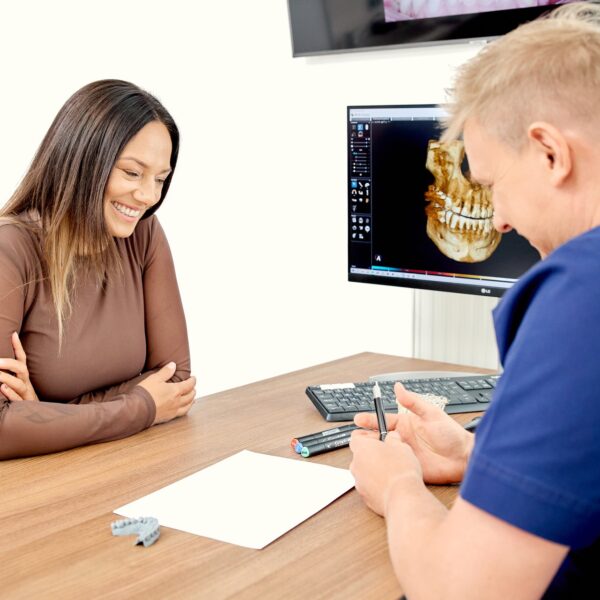 Pierwszy krok to szczegółowa konsultacja oraz kompleksowa diagnostyka. Rozmawiamy o Twoich oczekiwaniach, obawach i marzeniach dotyczących uśmiechu – to ważny moment, który pozwala nam zrozumieć, co naprawdę chcesz osiągnąć.